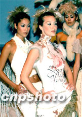 “香港時裝節2002秋冬系列”的“冬日傳奇”時裝展示1月15日在香港會展中心舉行,眾模特在“冰天雪地”中展示香港設計師最新設計的冰雪冬裝。中新社傳真任晨鳴攝