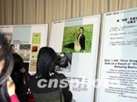 圖:中國留美學生觀看揭露邪教"法輪功"圖片展