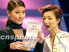 香港歌后鄭秀文、陳慧琳因上周發(fā)生倆人歌迷沖突而傳出不和之聞,1月18日晚倆人在“十大金曲”頒獎禮上攜手登臺主持儀式。中新社記者任晨鳴 攝