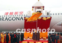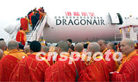 法門寺佛指舍利赴臺灣地區(qū)瞻禮(供奉)恭迎團、護法團,以及兩岸佛教人士二十三日在西安咸陽機場乘專機經(jīng)香港赴臺。 中新社圖 錢興強 攝