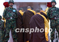 法門寺佛指舍利赴臺灣地區瞻禮(供奉)恭送法會二十三日在西安咸陽機場舉行圖為當地政府派出警察、武警確保佛指舍利安全。中新社圖 錢興強 攝