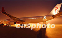二十三日在西安咸陽機場,A330專機載著法門寺佛指舍利,經香港赴臺灣地區瞻禮(供奉)。 中新社圖 錢興強 攝