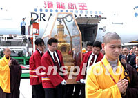 法門寺佛指舍利二十三日下午抵達臺北機場。作者:中央社攝/中新社