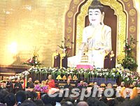法門寺佛指舍利供奉在臺北縣三峽金光明寺時,吸引數(shù)萬信眾前往瞻仰,大雄寶殿前、廣場前都擠滿信眾,相當壯觀。中央社攝/中新社發(fā)
