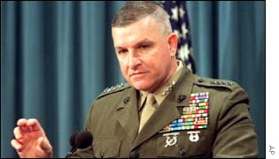圖文:美派遣特使津尼重返中東進行和平斡旋 2002年03月08日 07:41 ![]() 津尼 中新網北京3月8日消息:美國總統布什當地時間周四表示,沙特阿拉伯提出的和平方案可以作為開端,因此他將派遣中東特使津尼下周返回該區。 布什再次促請以色列和巴勒斯坦領袖克制,停止使用暴力手段。他說,不應讓暴力持續下去。 布什又說,副總統切尼也將會與津尼將軍一道參與這個中東和平任務。 他說,他了解以色列的自衛需要,但是也需要尋求和平。他說相信以色列總理沙龍也明白這個需要。 這是津尼今年1月暫停他的中東和平任務以來后首次重返該地區。此前,他沒法改變當地越發惡劣的沖突。 華盛頓的中東政策近來出現了快速的變化。星期二,布什總統強調需要讓巴勒斯坦人領袖阿拉法特減少攻擊以色列;一天之后,美國國務卿鮑威爾把矛頭直指以色列總理沙龍,對他提出了歷來最嚴厲的批評。