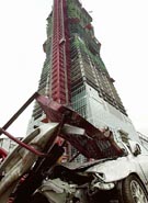 臺北"地標"建筑墜物停工 傾斜民宅將連夜支撐 2002年03月31日 20:08 ![]() 臺北“金融大樓”吊臂墜落砸毀轎車并造成傷亡。 中新網香港3月31日消息:臺北訊,臺北“國際金融大樓”工地在今天的大地震中吊臂墜落,造成至少4人死亡多人受傷的慘劇。臺北當局已經要求業者停工。 預定興建101層樓的臺北“國際金融大樓”,曾被預計為臺北未來的一座“地標”性的建筑,目前已經興建到一半的高度。但在地震發生時,架設在頂部的兩具吊臂與支架發生松脫而墮落,其中一具甚至掉落在馬路上。 依照當局規定,任何工地都必須依照規定設置防震性的防護措施。但“金融大樓”頂樓的吊臂在設置時是否合乎安全規定?吊臂支撐是否穩固?將成為當局調查的重點。 臺北市的“建筑管理處”今天已要求調查業者在施工時是否做好安全措施,并厘清肇事責任歸屬。 此外,臺北市承德路一座民房因為強震而部分倒塌,臺北市“副市長”歐晉德在7名受困民眾全部被送往醫院后表示,將連夜完成支撐建筑體的工作,避免這棟傾斜的樓房進一步倒塌。