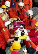 救援人員搶救一名傷者。(法新)