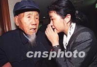 日本侵華戰爭時期,被搶掠到日本群馬縣“間組株式會社利根川出張所”做勞工的河北籍永清縣九十五歲中國勞工幸存者王德錄老人(左),三日來北京接受中日雙方律師的調查取證。右為中方女律師康健正在與老人交談。中新社記者 張勤 攝
