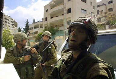 以色列軍隊從約旦河西岸城市蓋勒吉利耶和圖勒凱爾姆撤軍,但仍然占領著其他城鎮和村莊。圖為以色列士兵在4月8日持續第六天占領約旦河西岸的納布盧斯市。(法新社)
