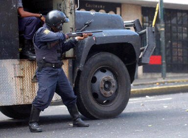 委內瑞拉當?shù)貢r間4月11日晚(北京時間12日上午),國民警衛(wèi)隊的卡伊魯茲將軍宣布,總統(tǒng)查韋斯的政府已經(jīng)“不再履行其職能”,全國局勢已經(jīng)被軍隊控制。此前,委內瑞拉發(fā)生數(shù)十萬人罷工,群眾要求查韋斯辭職。他們與警察、國民警衛(wèi)隊以及總統(tǒng)的支持者發(fā)生了激烈沖突,至少已導致12人死亡,96人受傷。圖為騷亂中一名國民警衛(wèi)隊員躲在車后準備射擊。(春風)