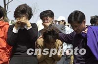 17日,韓國釜山中國國航空難現場,前來祭奠親人的韓國死難者家屬悲痛欲絕。中新社記者 陶光雄 攝