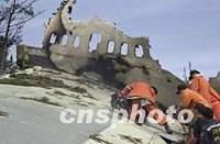 圖:韓國有關人員在飛機殘骸中繼續搜尋