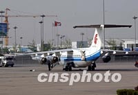 十七日,飛往韓國釜山的國航班機(jī)正點(diǎn)起飛,恢復(fù)了正常運(yùn)行。圖為十七日下午停在北京老候機(jī)樓前的一架國航飛機(jī)。中新社圖 武仲林 攝
