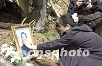 韓國死難者家屬在金海中國飛機失事現場,悲痛地撫摸親人遺像。中新社記者 陶光雄 攝