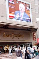 香港特區行政長官董建華四月十七日下午在立法會解釋有關高官問責制的情況。圖為大屏幕播出的有關新聞吸引了市民。中新社記者 任海霞 攝