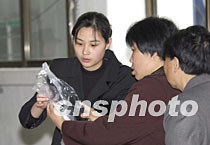 四·一五空難中國死難者家屬20日在韓國金海市認領遺物。圖為國航班機機組人員家屬在仔細辨認遺物。作者:陶光雄