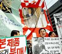 圖文:韓國民間團體集會抗議日本首相靖國參拜 2002年04月22日 16:07 ![]() 韓國在日本戰爭中的受害者,強烈抗議日本首相參拜靖國神社。圖為在漢城韓國警察試圖熄滅抗議者燃燒的日本旗幟。法新圖