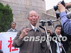 四月二十二日下午,南京大屠殺幸存者、受害者遺屬和社會各界人士兩百多人在侵華日軍南京大屠殺遇難同胞紀念館內舉行集會,強烈抗議日本首相小泉于昨日再次參拜靖國神社。作者:楊艷