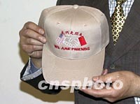 中國國家副主席訪美在即,美國僑界熱烈期待。其中美國江浙工商總會特別設(shè)計(jì)制作了一頂紀(jì)念帽準(zhǔn)備在胡錦濤訪問紐約的時候送給他。這是一頂米色的帽子,用咔嘰布作成,帽子的中央有一個橢圓型的標(biāo)志——兩只手握在一起,兩只手的袖口分別是中國國旗和美國國旗,并用中英文書寫“我們永遠(yuǎn)是朋友”。旅美華人社團(tuán)借此祝愿胡錦濤訪美成功,并表達(dá)美國華人對中美友好的祝福。中新社記者 趙海燕 攝