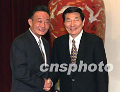 中國國務(wù)院總理朱镕基圓滿結(jié)束對土耳其、埃及和肯尼亞的訪問后,二十七日乘專機(jī)回到北京,國務(wù)院副總理吳邦國等在北京人民大會堂迎接。中新社記者 毛建軍 攝