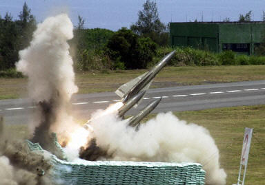 多圖:臺軍進行"神箭"演習 首次炫耀天弓2型導彈 2002年05月10日 11:56 臺軍的美制鷹式導彈(法新圖) ![]() “天弓”二型導彈(法新圖) ![]() 臺軍的“天弓”一型導彈(資料) 中新網香港5月10日消息:臺北訊,臺軍配合其“漢光18號”年度軍演而實施的“神箭43號”操演,今天上午在位于屏東的九鵬基地登場。 今天上午的操演以解放軍戰機襲擊臺灣東部為假設狀況,進行“天弓”導彈和美制鷹式導彈空中攔截的實彈射擊。其中的“天弓”二型導彈據稱是臺軍自行研發部署以來首次公開展示。 島內媒體稱,演習中先后進行鷹式導彈的“單系統、單目標接戰”和“天弓”導彈及鷹式導彈的“雙系統、多目標接戰”課目驗證。一枚“天弓“導彈和三枚鷹式導彈全部命中35公里外的標靶。 據“中央社”報道,“神箭43號”操演是臺灣陸軍年度例行性的防空導彈射擊訓練,由陸軍導彈指揮部執行。 臺軍從4月展開其“漢光18號”演習,其中納入年度“神箭”、“神弓”等防空導彈實彈射擊與“聯興”兩棲登陸、“聯云”空降操演及后備動員演習。 據悉,臺軍的“天弓”一型導彈基本參數為: 彈長:5.498米。彈徑:0.4米。翼展:0.92米。發動機段:3.192米。藥柱:445公斤。導引方式:半主動雷達或被動式紅外線導引。飛行速度:3.7馬赫。射程:100公里。重量:870公斤。 “天弓”二型導彈基本參數為: 彈長:5.678米。彈徑:0.4米。翼展:0.92米。發動機段:3.624米。藥柱:612公斤。導引方式:主動雷達導引。飛行速度:4.3馬赫。射程:200公里。重量:1135公斤。