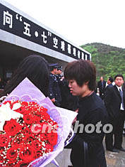 "五·七"遇難者首批遺體16日在大連一家陵園火化。悼念會上,品學兼優的14歲少年騰云的父母為失去愛子悲痛欲絕。騰云十分向往考上北京大學,"五·一"節假期,他獨自到北京大學校園參觀。當他帶著美好的夢想飛回家時,不幸永別了這個世界。王麗南 攝