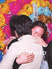 首批“5·7”空難罹難者遺體十六日在大連火化,家人親友們悲情滿懷,互相傾訴衷腸。王麗南 攝