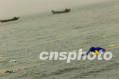 在大連“五·七”空難中失去親人的家屬們,連日紛紛到海濱拋撒鮮花,寄托無盡哀思。王麗南 攝