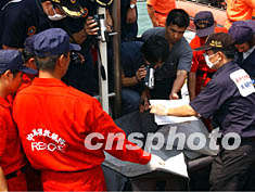 5月26日中午,臺灣救援各部門對打撈出的遇難乘客尸體先進行攝影、攝相、DNA等項全面監定后再交家屬認領。中新社記者 任晨鳴 攝