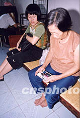 臺灣華航空難遇難者海南瓊山籍韓銀燕的母親已經是一位頭發花白的老人了,手捧女兒生前的照片,她忍不住灑下悲傷的淚水。她的身旁是韓銀燕的姐姐韓銀英,已啟程前往香港轉機臺灣。作者:邱江波