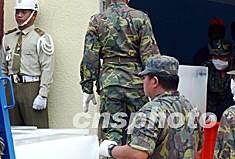 五月二十八日臺灣澎湖地區(qū)氣溫高升,設(shè)在馬公空軍基地的失事華航客機遇難乘客尸體辨認(rèn)中心空氣污濁,士兵緊急加運大量冰塊降溫。中新社記者 任晨鳴 攝