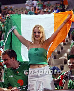 圖:德國VS愛爾蘭 性感女球迷高舉愛爾蘭國旗助威