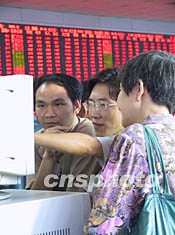 今天股市“牛氣”沖天 個股全線飄紅大多數漲停 2002年06月24日 15:29 ![]() 停止國有股減持的重大利好刺激,使滬深股市個股二十四日全線暴漲。中國股市的走勢目前受政策影響比較大,為明顯的“政策市”。圖為北京湘財證券營業廳內的股民在研判股票走勢。作者:章永哲