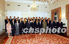 圖:江澤民主席與香港特區(qū)政府高官及知名人士合影