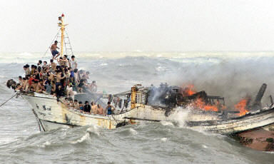 大陸船屋在高雄港起火獲救 海協就此事發表談話 2002年07月09日 18:31 ![]() 受困漁工聚在船首待救。(法新圖) ![]() 漁工被直升機凌空吊起,脫離火海。(臺灣聯合晚報圖) ![]() 獲救的漁工驚魂甫定。(臺灣聯合晚報圖) 中新網北京7月9日消息:海峽兩岸關系協會有關人士今天就一艘滿載大陸漁工的船屋在高雄港起火,人員大部獲救一事發表談話。 他說,7月9日上午8:30,搭載133名大陸漁工的臺灣屏東縣籍海上船屋“元勝”號,因浪大導致機艙進水,電線走火,在高雄附近海上起火。高雄港務消防局、臺灣“海巡署”等臺有關單位派出直升機、救生艇等全力搶救。海峽兩岸關系協會上午10時得知消息后,立即與臺灣的“兩岸人民服務中心”聯系,請該會轉請臺灣有關方面協助全力搶救。中國紅十字會、交通部海上搜救中心也分別與臺灣紅十字組織、臺北中華搜救協會緊急聯系,了解情況。至中午12時,“船屋”上132人獲救,其中5人輕傷送醫院治療。起火具體原因尚在調查中。 這位人士表示,大陸有關方面對遇險漁工的境況十分關心,海協已致函“兩岸人民服務中心”,向臺灣有關方面及參與救助的全體人員表達誠摯的謝意。 海協請“中心”轉請臺灣有關方面妥善安置獲救漁工,繼續搜尋失蹤人員;并希望臺灣方面改變不合理做法,確保大陸漁工應有的合理待遇和人身安全,防止類似事件再度發生。(完) 大陸漁工船失火:133人獲救2人重傷1人失蹤 中新網香港7月9日消息:臺北訊,作為祖國大陸漁工“海上旅館”用的臺灣屏東籍“元勝二號”漁工船,今天在高雄海域發生火災。據臺灣媒體最新消息,事故中目前共計救起133名大陸漁工,其中11人受傷送醫,另有一人失蹤。 據“中央社”報道,“元勝二號”漁工船今天上午在高雄大林蒲外海發生火警,造成祖國大陸漁工兩人重傷、九人輕傷送醫。 受傷的11名大陸漁工中,有10人被送往高雄市的小港醫院急救。其各自的傷勢情況如下—— 蕭輝,25歲,右手挫傷;陳如君,27歲,左手撕裂傷及頸部扭傷;陳良紅,28歲,頭部及右臉頰外傷;沈繼兵,32歲,頭部外傷及背部多處挫傷;顧海兵,23歲,右手臂擦傷及左小腿挫傷;張永,27歲,頭部外傷、多處撕裂傷、左手臂及右手肘挫傷;唐宗林,20歲,嗆傷及顏面灼傷;劉國保,29歲,嗆傷及胸部挫傷;師福君,21歲,嗆傷;李建國,26歲,臉部燒燙傷合并嗆傷。 這10名受傷漁工中,除師福君及李建國重傷外,其余都屬輕傷。其中師福君因在被救過程中落海,吸入大量海水,造成肺部吸入性嗆傷,經急救后,傷勢穩定,仍住院觀察;而李建國傷勢最為嚴重,但暫時亦無生命危險。 另一名祖國大陸漁工任忠均,22歲,身上多處擦傷,經急救已無大礙。 此外,一名失蹤者的身份目前待查。 原停泊在高雄與屏東間外海的“元勝”二號海上船屋,今天上午約8:30時在高雄南星計劃填海造陸區外海一浬處突然起火。由于風浪太大,救援船只無法靠近。臺灣方面遂派出直升機,以鋼纜吊掛、接駁方式,將船屋上的大陸漁工救至岸上。據悉,救援行動歷經近5個小時。 “元勝”號是臺灣屏東縣籍的祖國大陸漁工海上船屋,停泊高雄與屏東間外海,因臺灣方面不允許祖國大陸漁工上岸,該船屋被專門用于出海作業漁船雇用的大陸漁工居住。 相關報道: "突然巨浪打來…"大陸獲救漁工回憶海上大火驚魂 相關報道:大陸漁工船起火132人獲救 落水失蹤人數說法不一 相關報道:圖文:大陸漁工船屋被燒毀 128名漁工全部獲救 相關報道:七位大陸漁工在高雄急救 有人跳海 船屋沉沒一半 相關報道:臺灣船屋失火 救起60余大陸漁工 尚有30多待救 相關報道:搭載大陸漁工的船只在臺灣海峽失火 100多人待救 相關報道:一艘載有100多人的大陸漁船在臺灣海峽著火