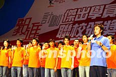 八月六日,香港舉行毅進計劃杰出學員聯校頒獎禮,“毅進大使”方力申帶領杰出學員宣誓。潘索菲 攝