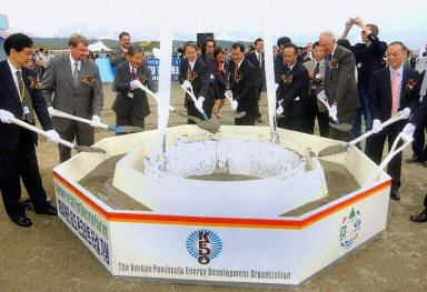 朝鮮半島能源開發組織(KEDO)援建朝鮮的輕水反應堆核電站主體混凝土工程8月7日舉行了開工典禮。