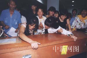 圖文:在以色列遇難的兩名福建勞工遺體運抵福州 2002年08月07日 22:43 ![]() 圖為福建中福公司副總經理林炎,向死難者許恒勇、李斌的家屬發送慰問金。中新社記者 劉可耕 攝 ![]() 圖為許恒勇的親屬哭倒在他的棺木上。中新社記者 劉可耕 攝 ![]() 圖為李斌的一雙兒女披麻戴孝迎接父親棺木。中新社記者 劉可耕 攝 中新社福州八月七日電 (記者 陳悅)今晚七時許,從香港起飛的MU五七八航班運載著在上月以色列特拉維夫爆炸案中遇難的福建勞工許恒勇和李斌的遺體在福州長樂機場降落。七時半,等候多時的親屬們迎來了遺體,隨即護送靈柩返回福州平潭故鄉。 等候遺體時,兩人的親屬都沉浸在巨大的悲痛中。李斌和許恒勇的妻子自出發起就痛哭不絕,此時已聲音嘶;許恒勇的妹妹則突然昏厥過去,良久才蘇醒。許恒勇的叔叔介紹,兩人的親屬是今日早些時候冒著暴雨從平潭啟程的,許家家境不好,許恒勇是家中的頂梁柱,他的去世給家人帶來巨大打擊,他十三歲的大兒子受刺激精神恍惚,一度住院。李斌的親屬亦介紹,李斌的岳父聽到噩耗后不久就去世了。 七時半許,靈柩被運出機場貨運出口,家屬們護送棺木運上車。據稱,兩人原所屬的福建中福公司亦來機場接靈柩并為兩人辦理相關手續。該公司副總經理林炎向兩人送上該公司職員募集的捐款。林炎介紹,以色列還將派官員及保險公司職員來北京商討賠償事宜。據悉,二人雖均屬合法入境,但許恒勇已“跳槽”離開原打工單位,而李斌屬超期非法滯留,故二人獲得的賠償標準將無法完全比照在“四·一二”耶路撒冷爆炸案中遇難的福建勞工獲得的以方賠償。(完)