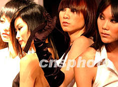 世界著名時尚大師沙宣八月在北京舉辦的2002年中國美容美發節上,舉行發型展示會,此次展示的新款發型旨在中國以及亞洲的美發師共享沙宣美發經驗,提高美發技藝。圖為中國希肯國際模特公司的模特展示沙宣新款發型。錢興強 攝