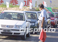 中國一汽大眾新近推出一款寶來新型轎車,公司十日邀請記者在北京試車促銷。 作者:宋吉河