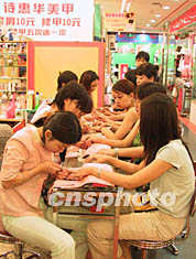 廣州時興妝扮指甲,雙休日美甲店里坐滿了美甲女郎。作者:邢健