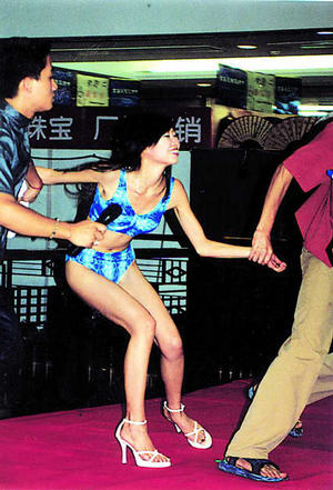 圖文:女模特脫衣推銷 男朋友憤而攪場 2002年08月19日 10:30 ![]() ■長衫就是“防腐層”■短裙代表“塑料”■脫得只剩內(nèi)衣 ![]() ■男友硬拉模特離場 攝影/趙訓(xùn)成 中新網(wǎng)北京8月19日消息:讀者趙先生昨天給北京青年報(bào)打來熱線說,他前天在一個(gè)購物廣場看到一個(gè)管道廠家為了讓人們更了解“管道”的內(nèi)部結(jié)構(gòu),竟然讓兩位假扮“管道”的小姐一層一層脫道具服,直到小姐的男友出面干涉才罷休。 趙先生講述了事件的整個(gè)過程:“當(dāng)時(shí),我在商場購物,看見一家管道企業(yè)正在推介產(chǎn)品。兩位扮演‘管道’的女模特當(dāng)著眾人的面脫起衣服,這讓不少觀眾大吃一驚,還有一些母親趕緊捂上孩子的眼睛。這兩位女模特直到露出了穿在里面的內(nèi)衣才停止。忽然,一位女模特的男友出現(xiàn),硬拉女模特要離開,但廠家人員就是不讓,雙方開始爭執(zhí),場面頓時(shí)變得異常混亂。” 有關(guān)廣告專家分析說,讓消費(fèi)者反感的廣告形式有可能抬高了企業(yè)的“知名度”,但是卻降低了產(chǎn)品的“美譽(yù)度”,反而會(huì)給產(chǎn)品銷售帶來負(fù)面效果。畢竟,消費(fèi)者是否選擇這種產(chǎn)品,最終還是決定于產(chǎn)品質(zhì)量和售后服務(wù),這樣的“秀”還是少做為好。(王旭)