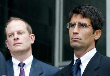 8月21日,美國能源交易商安然破產案有突破發展,公司前財務主管科帕承認串謀詐騙及洗錢罪,并愿成為控方污點證人。圖為科帕8月21日在聯邦法庭大樓外。