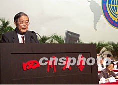 中國科協2002年學術年會五日在四川大學體育館隆重開幕。中國科協主席周光召致開幕詞。作者:陳雯