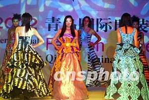 2002年青島國際時裝周五日開幕,來自中國、意大利、俄羅斯的時裝模特們在T型臺上展示俄羅斯、日本和中國著名時裝設計師的作品。作者:毛建軍