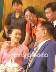 桑蘭九日晚在她出任中國特奧”愛心大使”酒會上對全國殘聯主席鄧樸方說,她對能參加這樣的運動會深感榮幸。作者:宋吉河