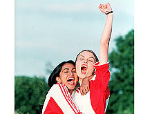 中新網(wǎng)9月19日電 《我愛貝克漢姆》女主角帕敏德初登大銀幕,為了扮演好這個對貝克漢姆有狂熱崇拜的角色,她憑著“JUST DO IT”的精神,苦練足球基本功,令導演不禁懷疑帕敏德私下究竟花了多少時間偷練?有場讓帕敏德表演踢自由球的戲碼居然一次就O.K,令劇組人員目瞪口呆!