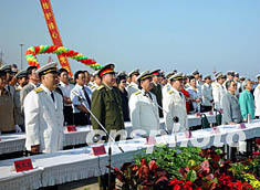 9月23日上午,中國海軍艦艇編隊完成環球航行任務后順利返回青島,中央軍委副總參謀長熊光楷上將等軍界首長與青島市各界代表熱烈歡迎編隊凱旋。此次環球航行共計130余天,總航程達到三萬多海里,創下了中國海軍艦艇遠航的新記錄。季宇 攝