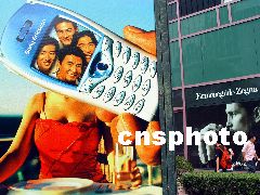 來自中國移動方面的消息說,令用戶望穿秋水的MMS即將正式登場。據介紹,MMS是Multimedia Messaging Service的縮寫,中文意為多媒體短信服務,其信息包括圖像、音頻信息、視頻信息、數據及文本等形式,可以支持語音、因特網瀏覽、電子郵件、會議電視等高速數據通信。MMS的另一特色是手機與攝像頭的結合,用戶只需擁有帶攝像頭的MMS手機,就可以隨時隨地拍照,并將照片保存到手機作為屏幕或屏保,或是通過GPRS發送給親朋好友。圖為上海街頭帶有攝像頭的彩屏手機廣告。李江松 攝