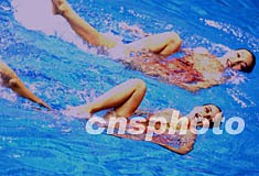 澳門花樣游泳雙人組合在釜山亞運會二日決賽上演水中“梁祝”,富于美感。作者:賈國榮